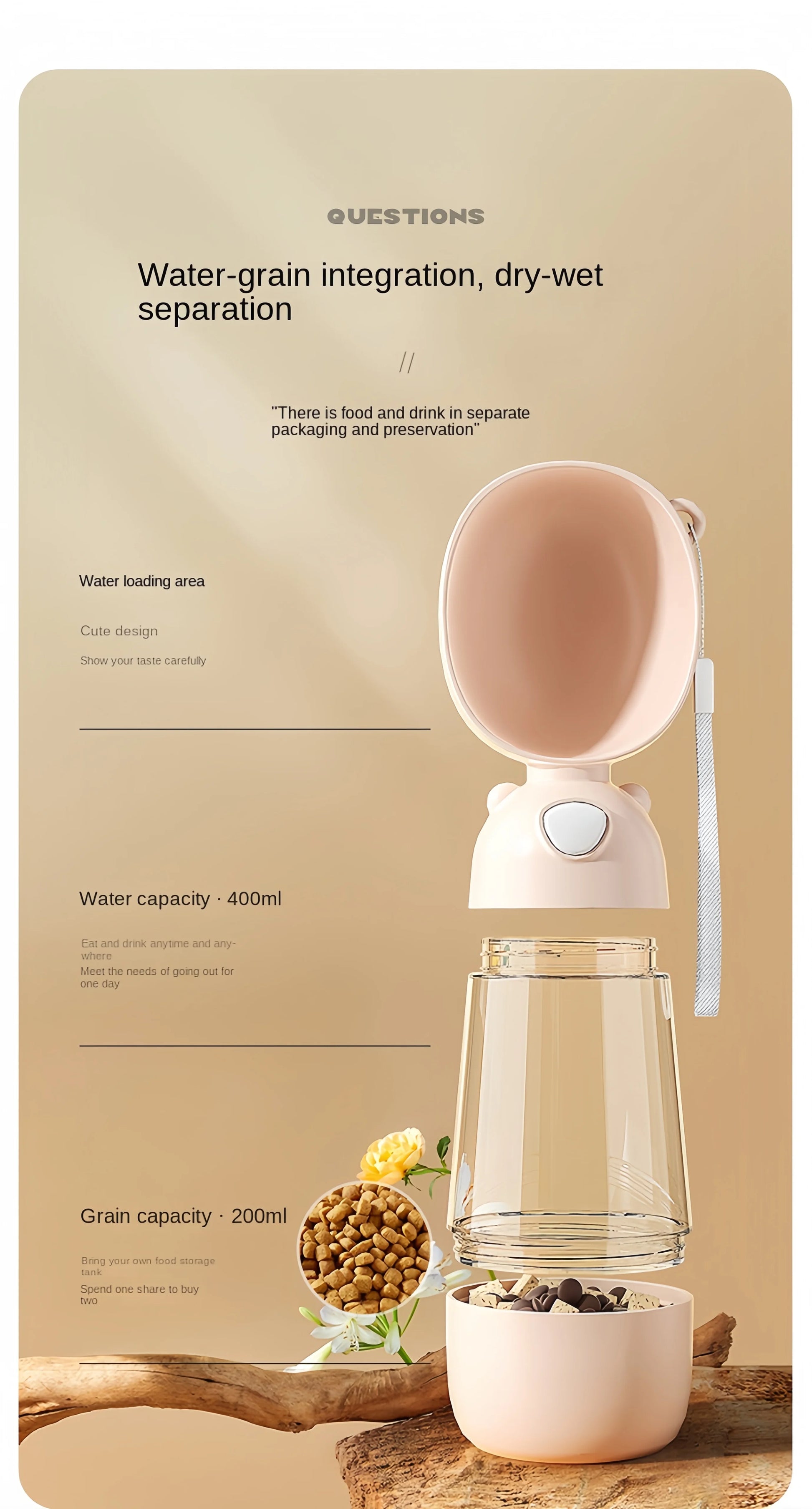 Portable Pet Water Bottle with Food Dispenser – Travel Cup for Dogs & Cats